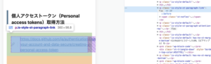 今回はCSSで対応したいので、対象の要素にクラスが設定されているかを確認します。PCのブラウザでデベロッパーツールを表示しクラスの有無を確認します。