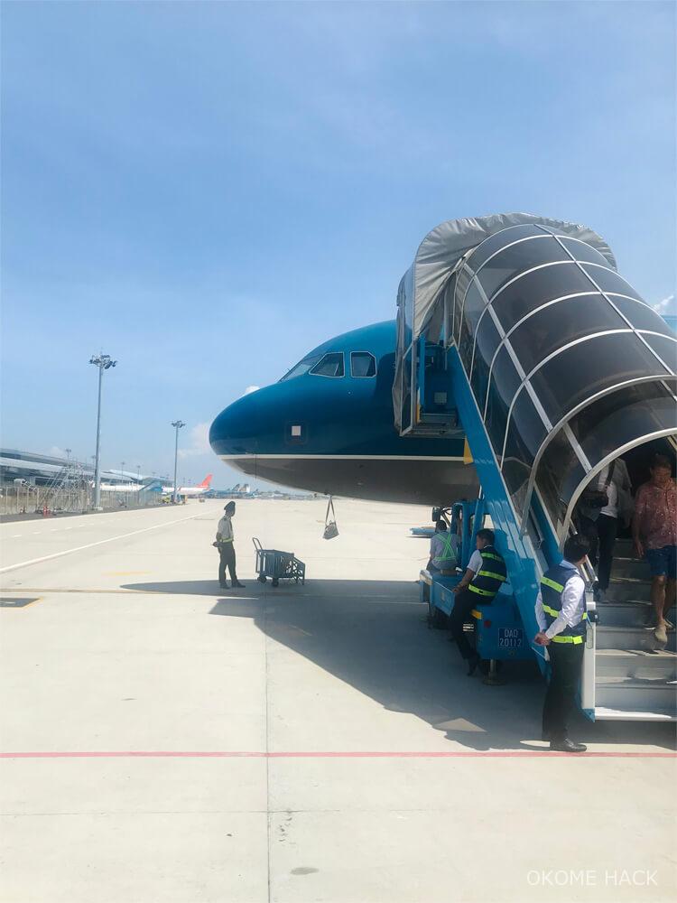 飛行機から降りたら空気が全く違う!!ムワッと湿気がすごい感じ、南国きたーって感じです。飛行機から空港までは、タラップを降りてバスで移動です。飛行機をタラップから降りるのまた新鮮。普段できない経験がや風景が見られてまたまたテンション上がります。