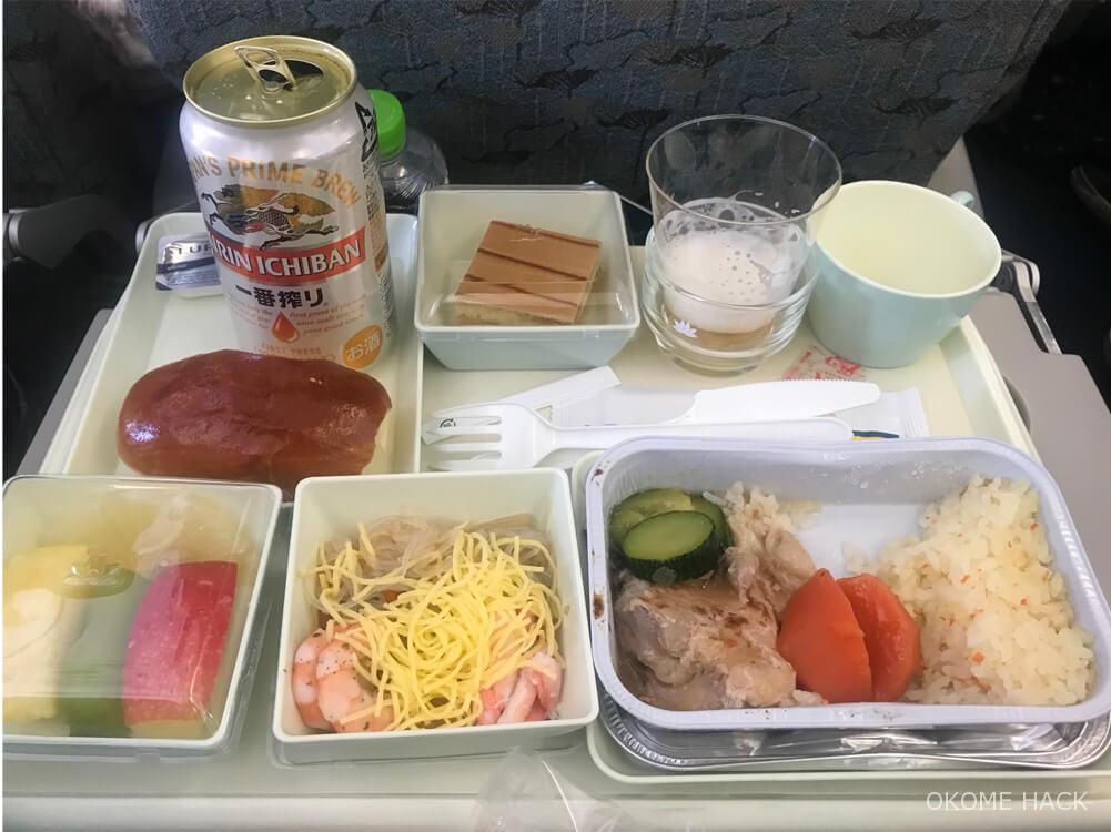 ウェルカムドリンクを飲んでしばらくしたら機内食の時間です。