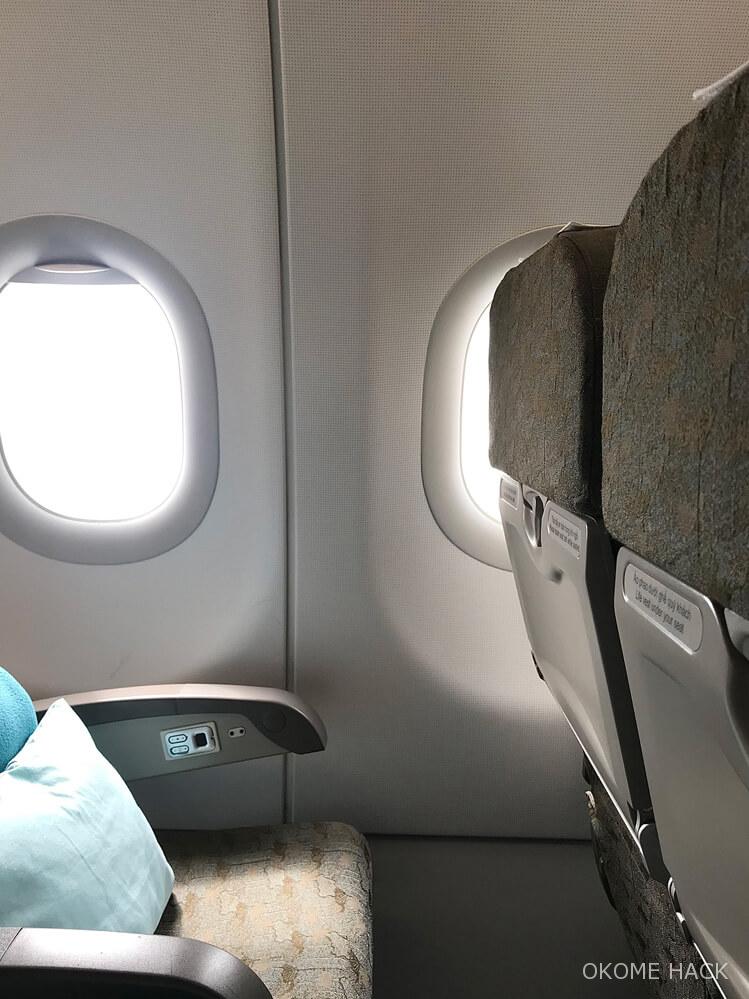 ダナン行きのベトナム航空のシートは3列×3列のシートで残念ながら個人モニターはありません。私たちは通路側の2席を選びました。旅行代理店からホテルと航空券セットのツアーを予約しましたが、24時間前からベトナム航空会社のサイトで座席の変更ができました。