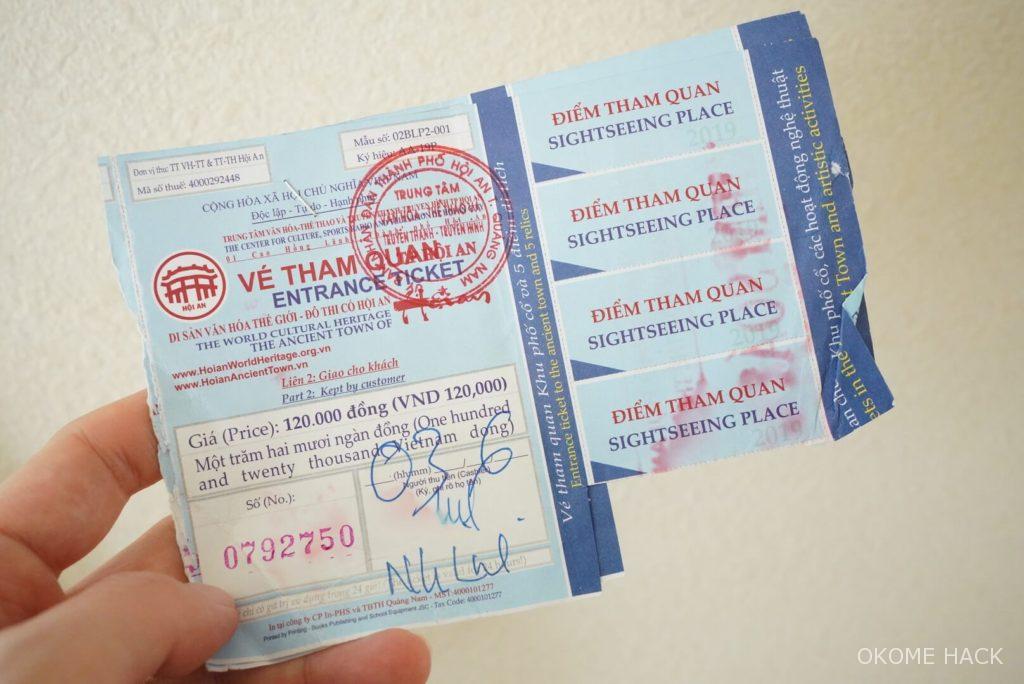 ホイアンの旧市街を観光するには、「ENTRANCE TICKET」の購入が必要です。