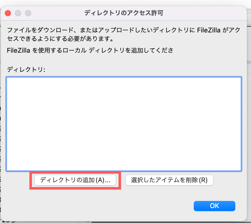 パソコンを買い替え、Macの移行アシスタントを使って設定を移行していたのですが、FileZillaの設定がうまく引き継がれていなかったか、パスが変わってしまっていたかで問題が起きていたようです。
