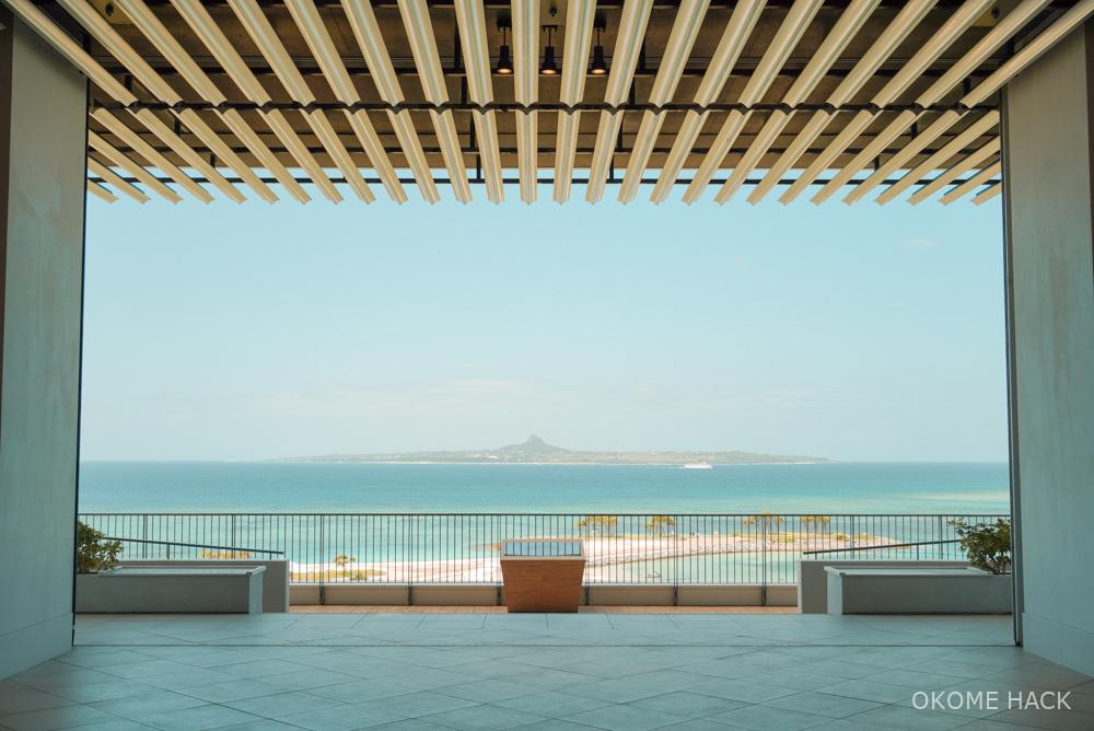 目の前に見える島は、沖縄の離島の一つの「伊江島」本島からフェリーで30分ほどで行けるそう。