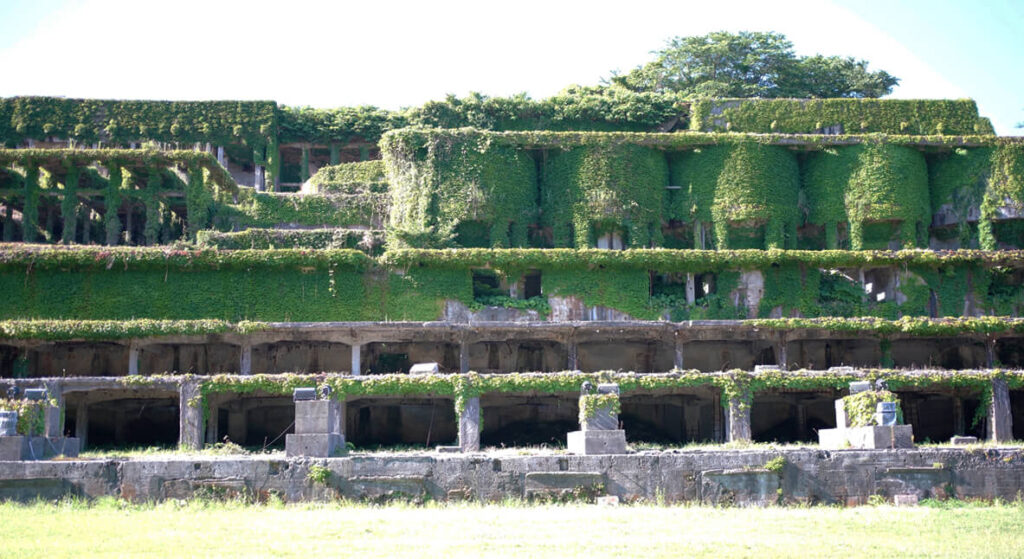 大きく朽ちている建物は圧巻で、夏には建物にそって茂っている植物がラピュタの世界を感じます。